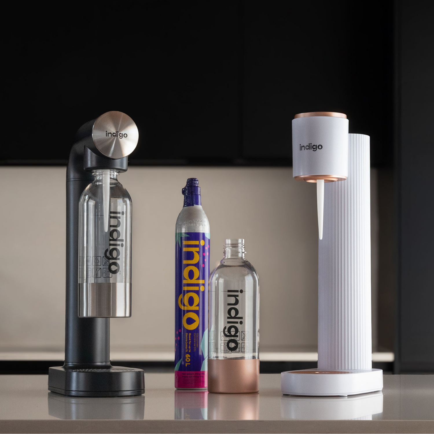 Un cylindre Indigo Soda permet de gazéifier jusqu'à 60 L d'eau pétillante. La quantité réelle varie selon le niveau de pétillance choisi et la température de l'eau. Une eau bien froide produit davantage de bulles et une pétillance plus durable.